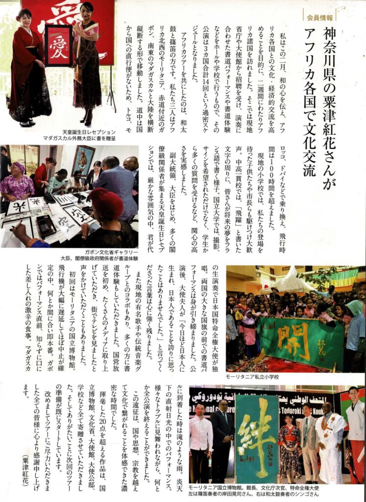 JDCA日本デザイン書道作家協会の機関誌にアフリカツアーのレポートを掲載いただきました。